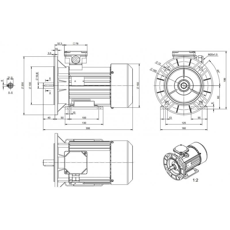 | Wielkość mechaniczna (wznios osi wału) | 80 |