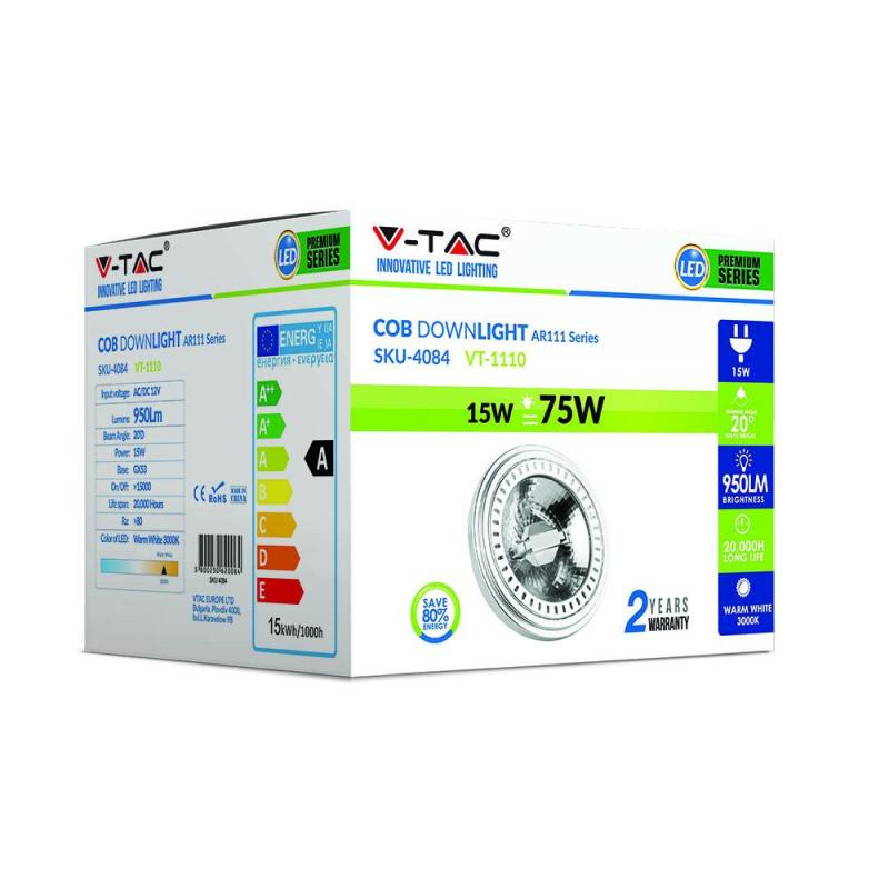 Żarówka LED V-TAC VT-1110 15W G53 PAR AR111 6400K 950lm A 20°