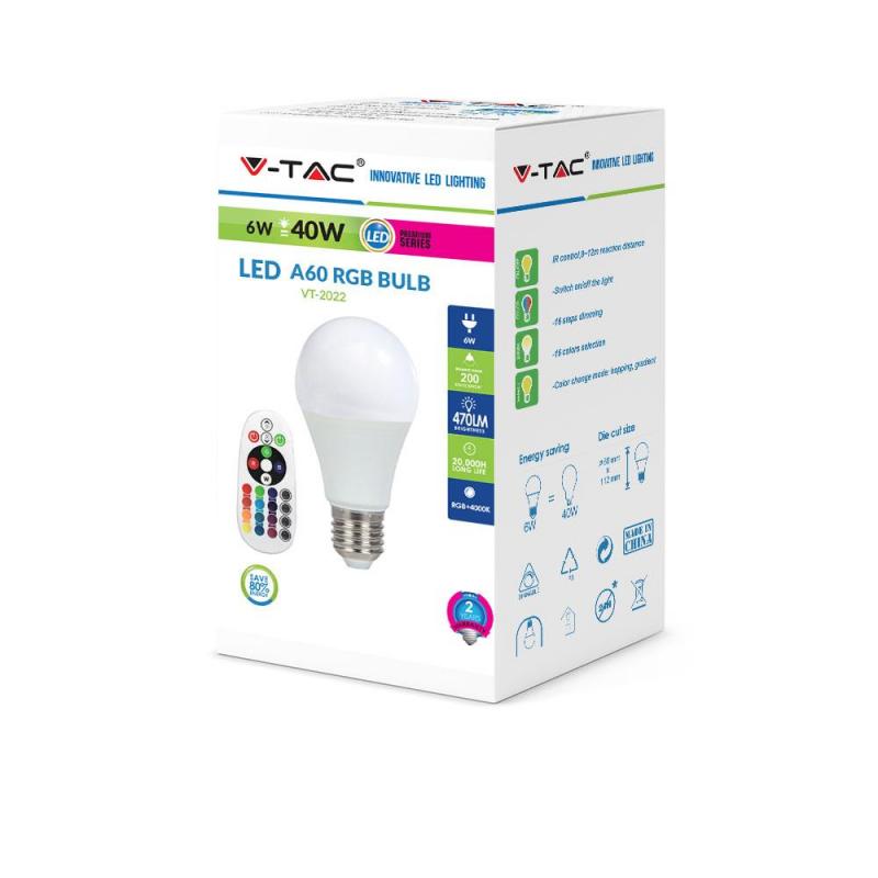 Żarówka LED V-TAC VT-2022 6W E27 A60 2700K 470lm A+ 200° 1szt.