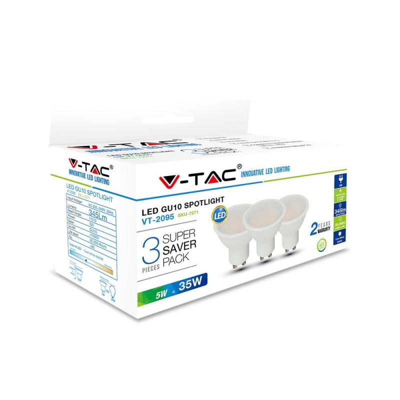 Żarówka LED V-TAC VT-2095 5W GU10 3000K 400lm A+ 110° 3szt.