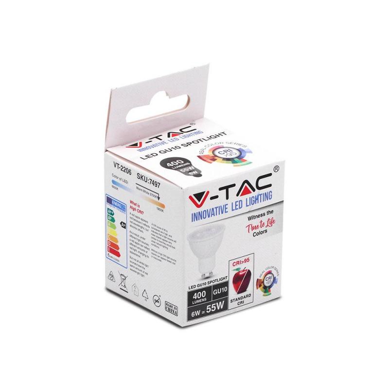 Żarówka LED V-TAC VT-2206 6W GU10 6400K 400lm A+ 38°