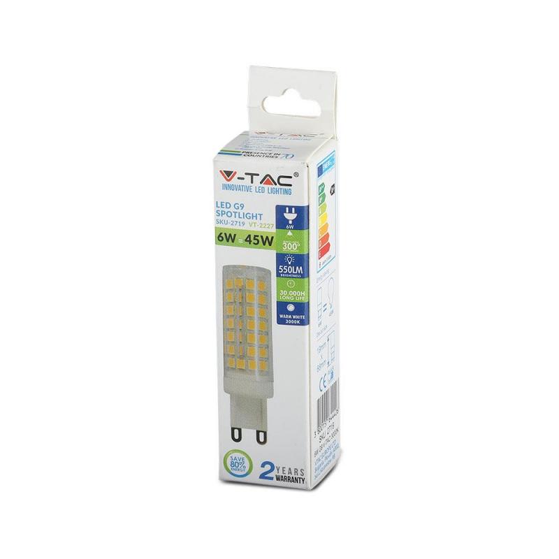 Żarówka LED V-TAC VT-2227 6W G9 6400K 550lm A+ 300°