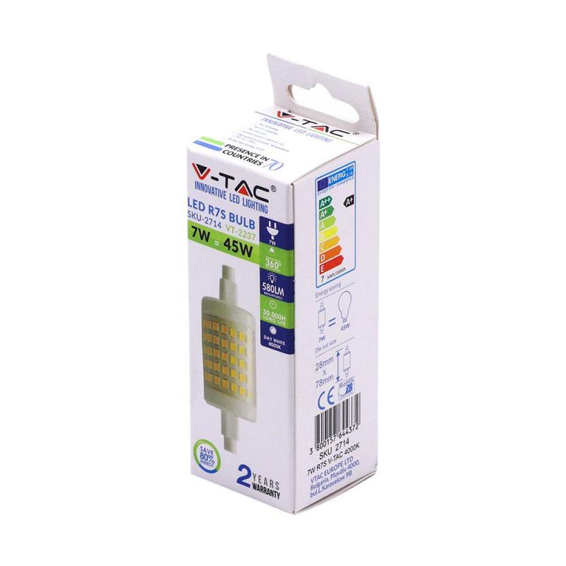 Żarówka LED V-TAC VT-2237 7W R7S R7S 4000K 580lm A+ 360°