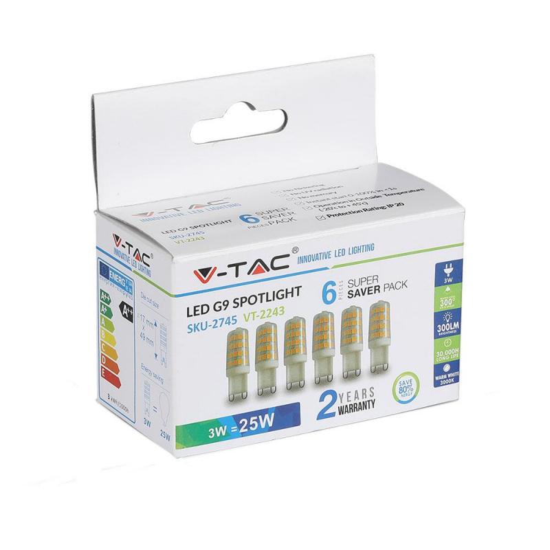 Żarówka LED V-TAC VT-2243 3W G9 6400K 300lm A++ 300° 6szt.