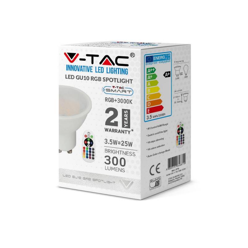 Żarówka LED V-TAC VT-2244 3,5W GU10 RGB+4000K 300lm A+ 110°